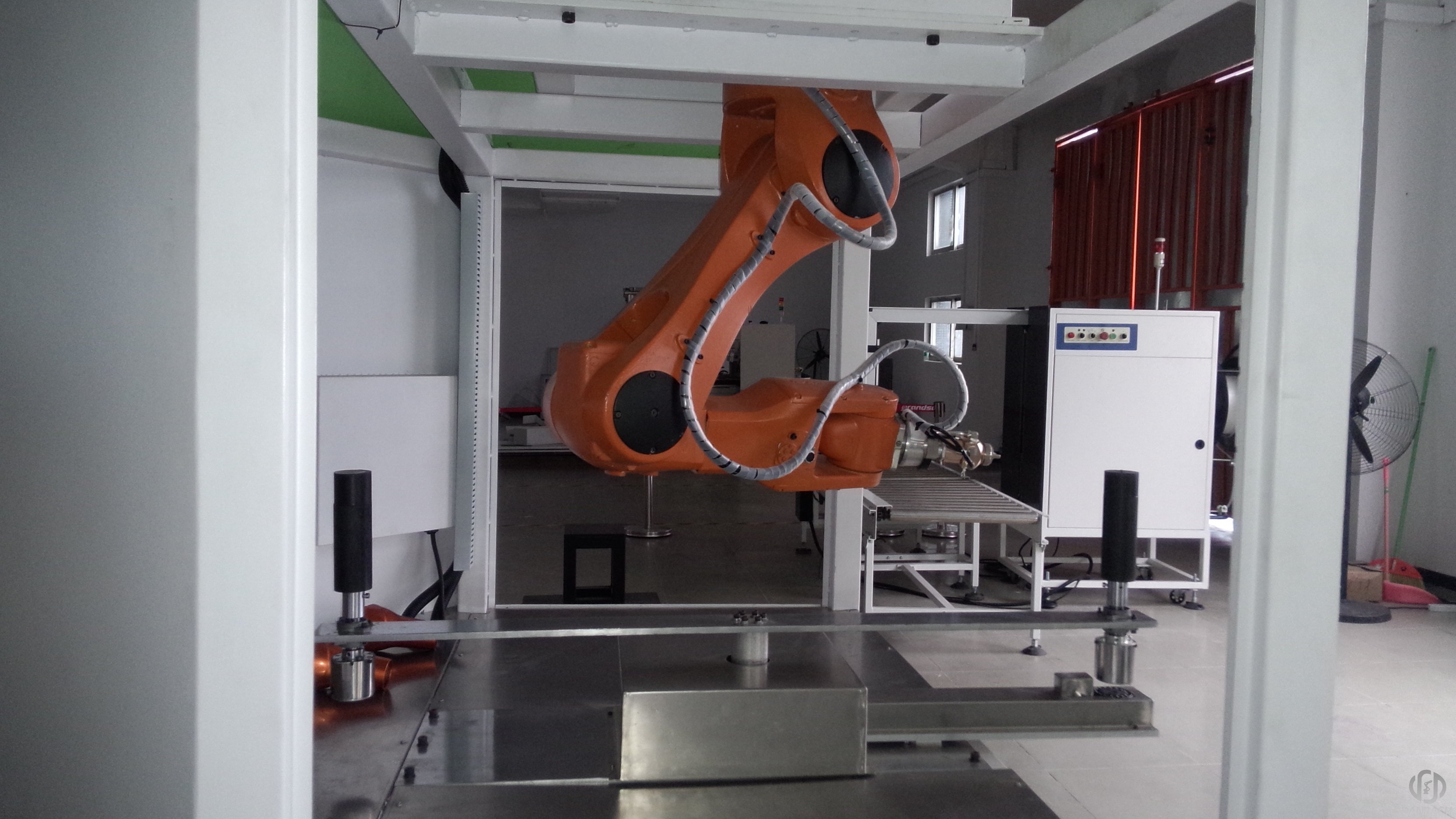 6、噴涂機(jī)器人本身的靈活性決定了可以在高密度生產(chǎn)線或空間內(nèi)安裝,可以有地面、墻壁、導(dǎo)軌、頂棚等多種多樣的安裝方式,并且機(jī)器人的大小不同,可以選擇適合噴房尺寸的機(jī)器人,這樣使得噴漆室的面積縮小,節(jié)約了場地成本。噴涂的環(huán)境也是需要定的能熬來維持的,空間的縮小能使得能耗的降低。