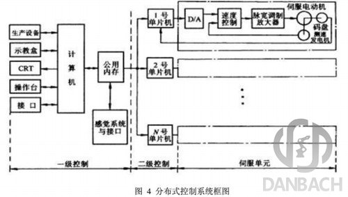 對(duì)于具有多自由度的工業(yè)機(jī)器人而言,集中控制對(duì)各個(gè)控制軸之間的藕合關(guān)系處理得很好,可以很簡單的進(jìn)行補(bǔ)償。但是,當(dāng)軸的數(shù)量增加到使控制算法變得很復(fù)雜時(shí),其控制性能會(huì)惡化。而且,當(dāng)系統(tǒng)中軸的數(shù)量或控制算法變得很復(fù)雜時(shí),可能會(huì)導(dǎo)致系統(tǒng)的重新設(shè)計(jì)。與之相比,分布式結(jié)構(gòu)的每個(gè)運(yùn)動(dòng)軸都由個(gè)控制器處理,這意味著,系統(tǒng)有較少的軸間禍合和較高的系統(tǒng)重構(gòu)性。